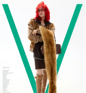 此次封面是《V》中文版 “少女侠气银十新章” 主题的重磅呈现,刘浩存用双套 look 演绎出 “双面侠女” 的深层内涵。一套红发配红大衣,是锋芒毕露的时尚战士;另一套黑皮衣缀蓝丝带,是暗藏温柔的叛逆少女。这种多面性恰与她的演员身份形成呼应 —— 正如她在《想飞的女孩》中诠释的脆弱与力量并存的单亲妈妈,在镜头前她总能驾驭矛盾特质。业内人士指出,这种造型与内核的共振并非偶然:MIU MIU 选择她作为亚洲面孔代言人,正是看中其 “老钱知识分子风” 与 “灵动少女感” 的独特融合,而此次银十封面无疑巩固了她 “时尚 icon” 的进阶之路。