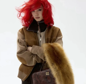 当《V》中文版银十刊正式出街,刘浩存的红发造型瞬间击穿时尚圈的期待阈值。这头如火焰般炽烈的短发彻底颠覆了她过往清新甜美的 “谋女郎” 标签,搭配 MIU MIU 2025 秋冬系列红色大衣,在镜头前构建出强烈的视觉张力 —— 白皙肤色与饱和红的碰撞,让每一张大片都具备 “壁纸级” 质感。更令人惊艳的是造型中的矛盾美学:黑色皮衣的酷飒与蓝色蝴蝶结的灵动形成奇妙平衡,高马尾 “大光明顶造型” 将古典元素与现代叛逆完美融合,精准诠释了品牌 “叛逆富家千金” 的核心调性。