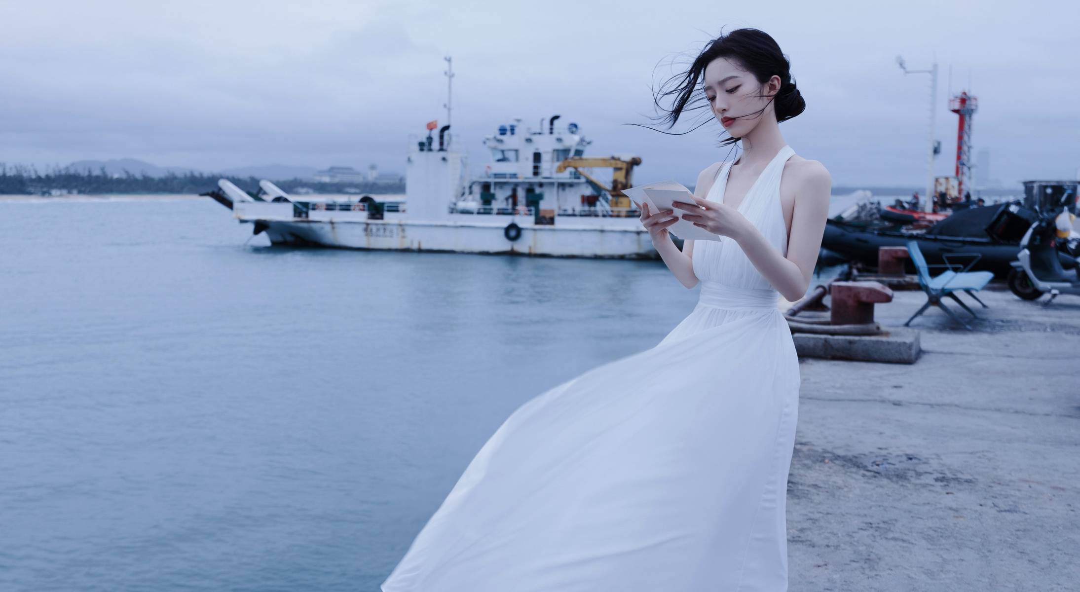 除了造型设计的加持,邓恩熙自身的气质与状态更是让白色露背裙“活”起来的关键。拍摄中,她或侧身转头,让长发与露背线条形成柔和曲线;或轻提裙摆漫步,层叠欧根纱随之扬起如花瓣绽放;偶尔低头浅笑时,眉眼弯弯的弧度与纯白裙装的纯净感相互映衬,仿佛从童话中走出的少女。这种浑然天成的清丽感,与她以往塑造的角色形象一脉相承——《嫌疑人X的献身》里倔强却清澈的陈晓欣、《十二谭》中天真烂漫的小鱼,这些角色身上的纯粹特质早已融入她的气质里。当她穿上白色露背裙时,无需刻意摆拍,眼神里的干净与肢体的自然舒展,便让整个造型充满了“故事感”,区别于刻意营造的“仙气”,多了一份真实可感的少女灵气。